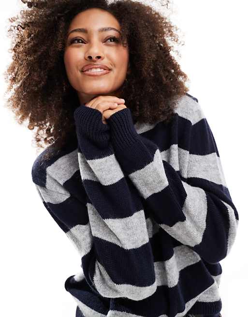 ASOS DESIGN – Flauschiger, gestreifter Pullover in Blau und Grau, Kombiteil | ASOS