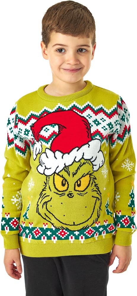 The Grinch Kids Grüner Strick Weihnachtspullover | Festlicher Feiertagspullover Spaß & Gemütlich | Erlebe den ikonischen Geist des Grinch im …