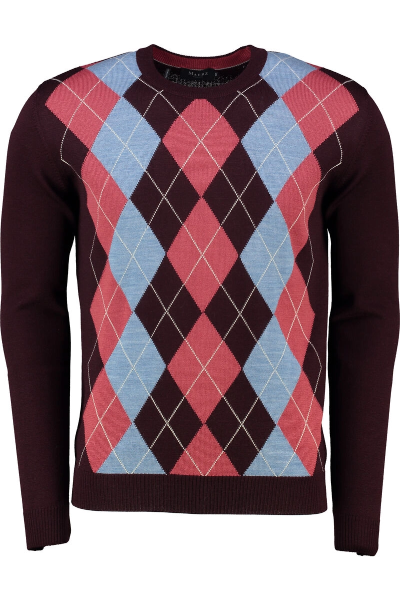 MAERZ Pullover bordeaux gemustert Argyle Muster in Herren Übergröße kaufen