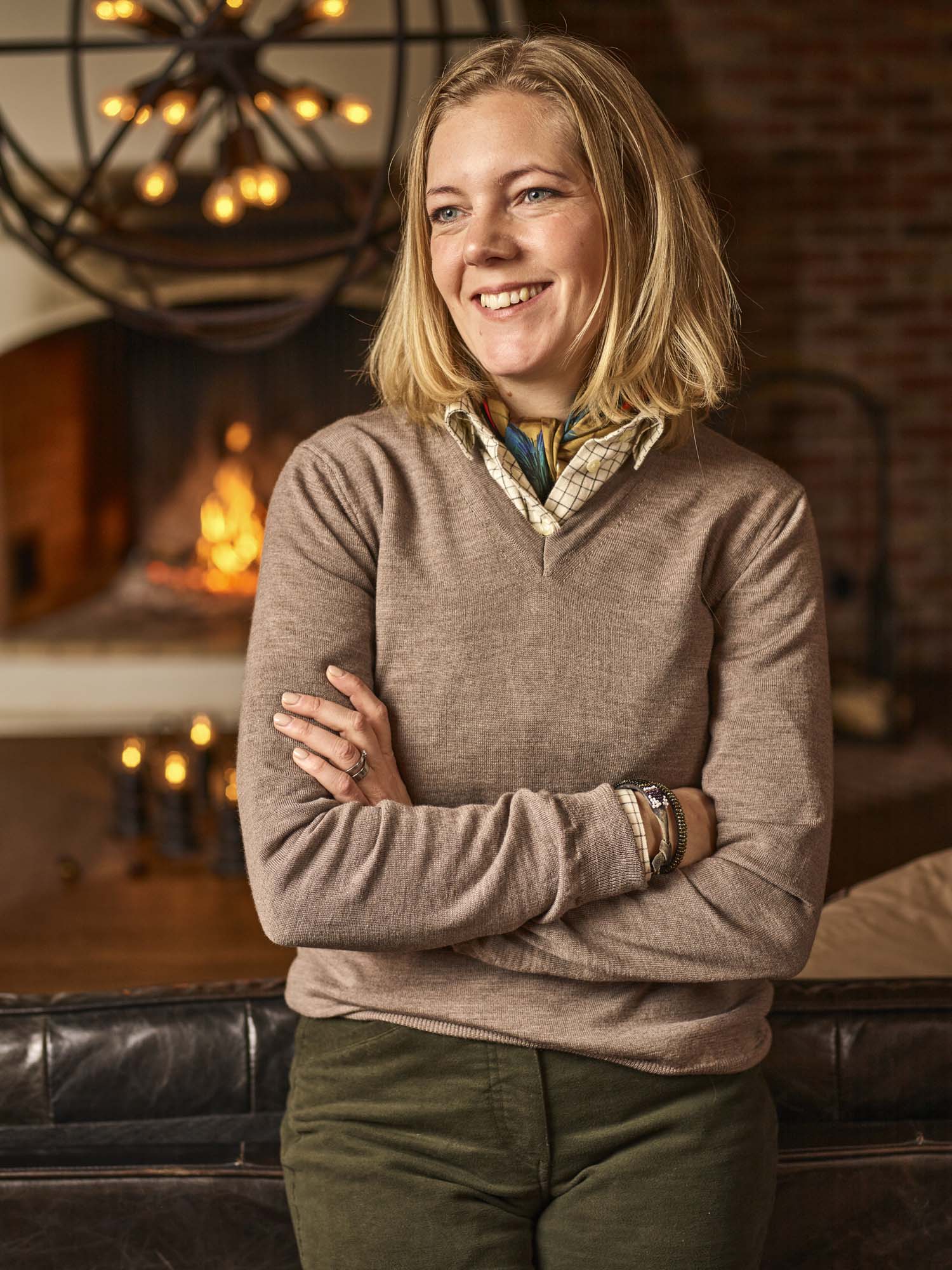 Blaise V Neck Merino Pullover Damen Beige Chevalier