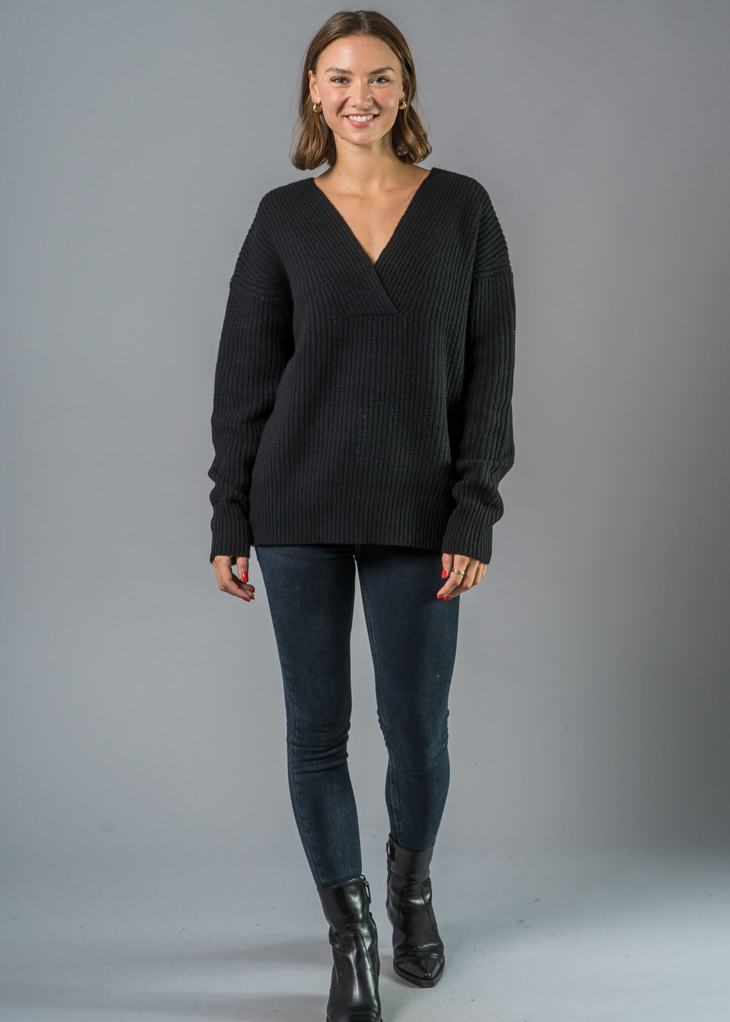 Oversize Pulli Damen schwarz aus Merino Kaschmir Blend
