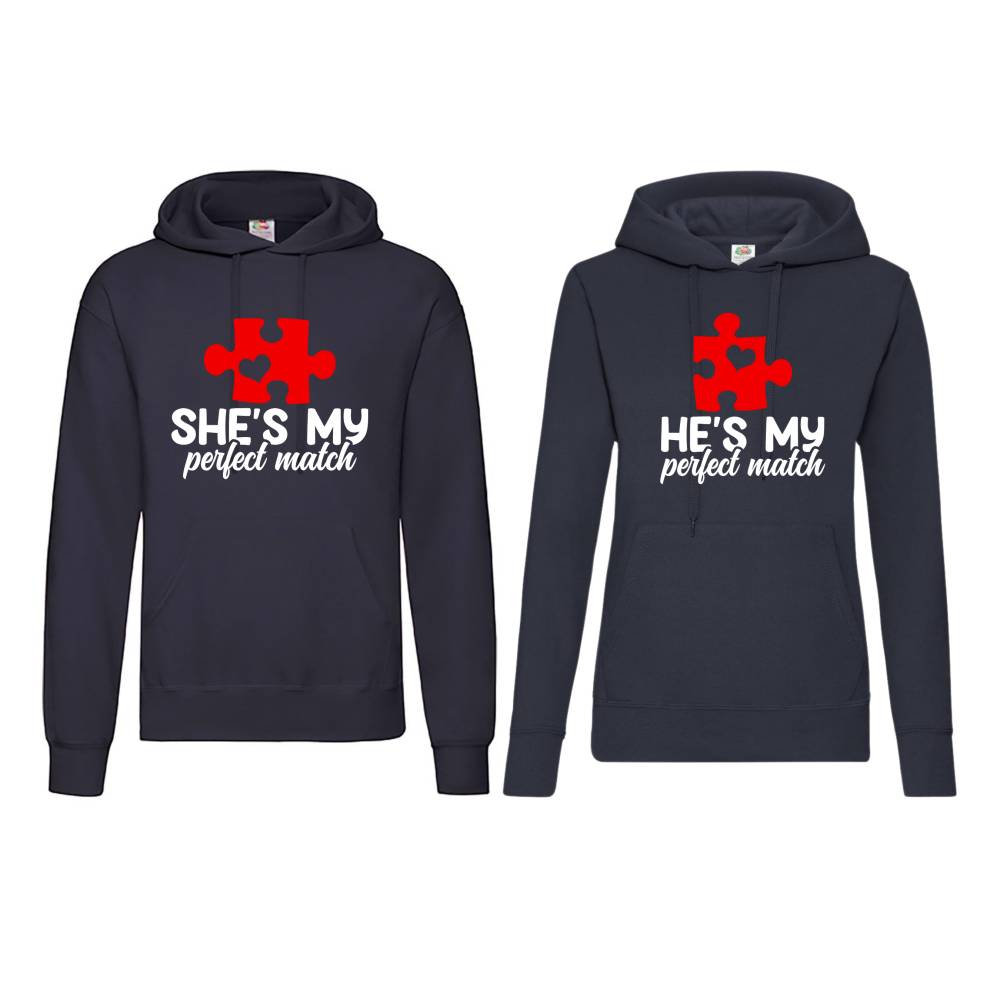 Partner Hoodie Sweater mit Kängurutasche & einzigartigen Prints ,,Perfekt match“, Kapuzenpullover für Sie und