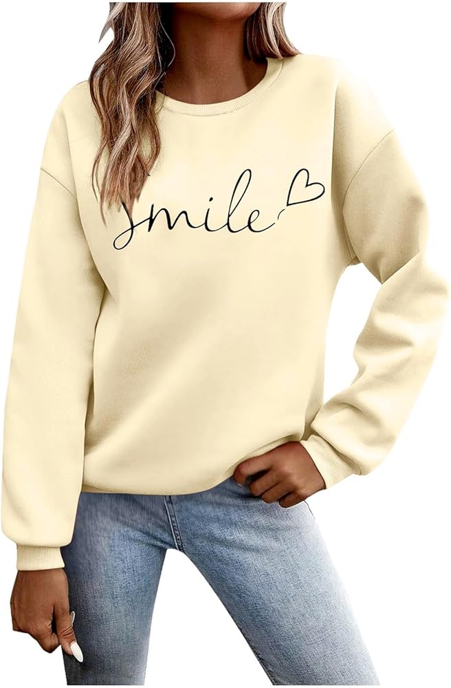 Sunnyuk Fashion Damen, Damen Sweatshirt Baumwolle Langarm Casual Sweater Sweatshirts Winter Rundhals Pullover Ohne Kapuze Gedruckt Langarmshirt …