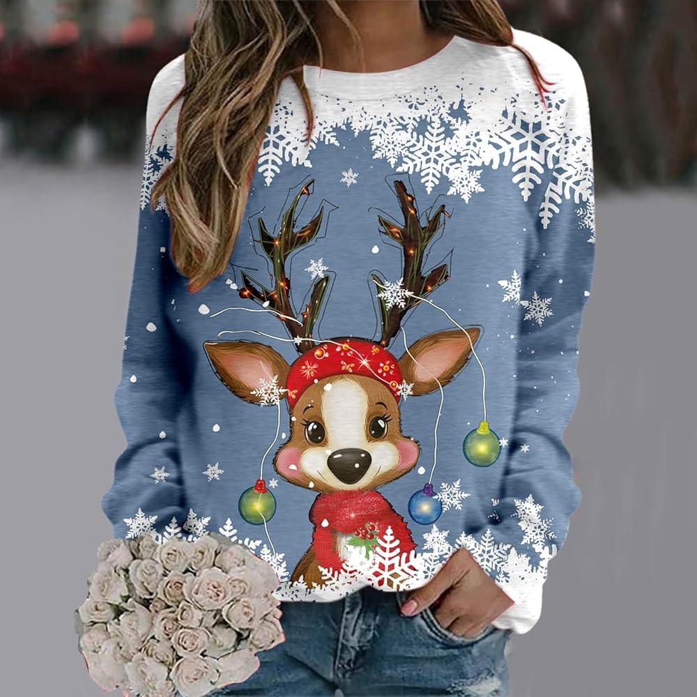Weihnachtspullover Damen Pullover Merry Christmas Sweatshirt Lustig Rudolph Rentier Druck Baumwolle Weihnachten Weihnachts Xmas Pullover …