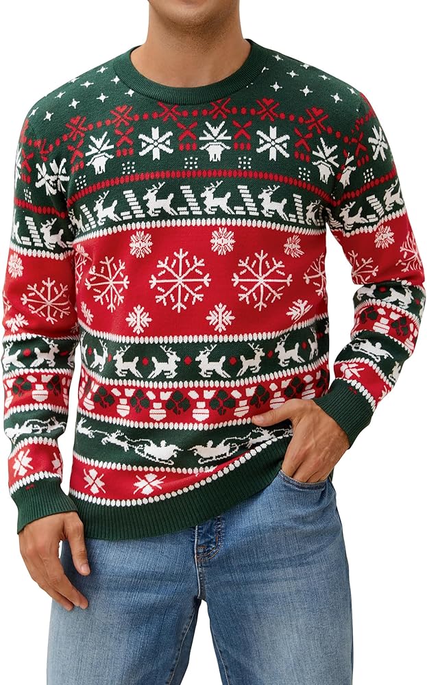 Atforna Weihnachtspullover Herren Weihnachtspulli Ugly Christmas Sweater Lustige Strickpullover mit Reindeer Männer Weihnachts Pullover mit …
